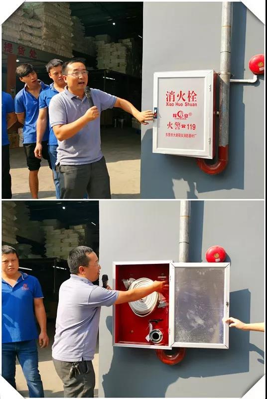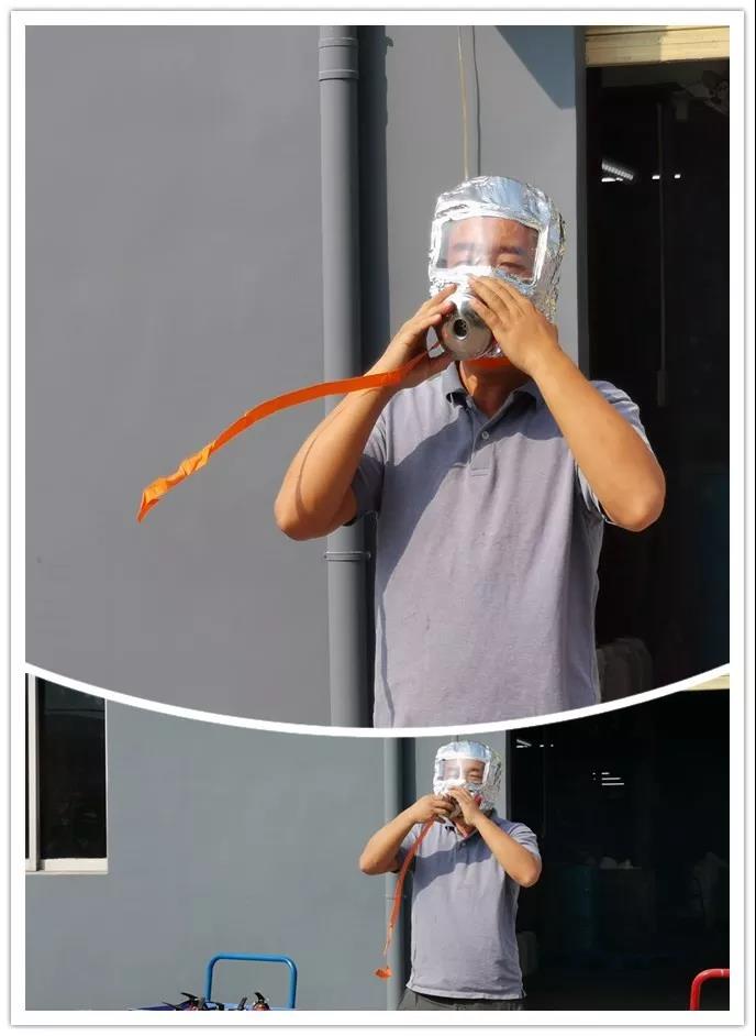 搶答完成后,負(fù)責(zé)公司消防器材維護(hù)的大劉,教大家如何正確使用滅火器、防火面罩及消防栓。