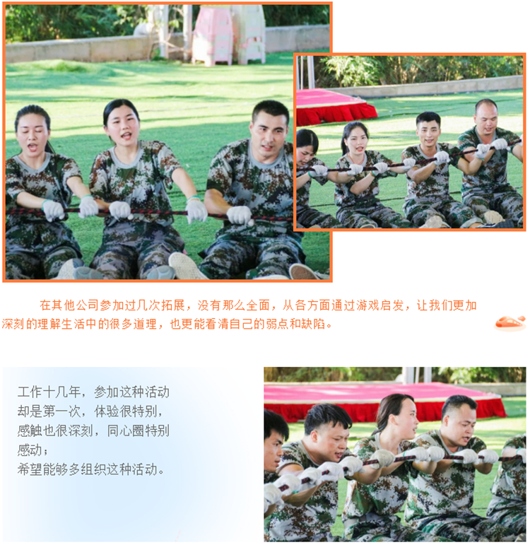 這是第三次與東莞三合團(tuán)建團(tuán)隊(duì)合作的團(tuán)隊(duì)拓展項(xiàng)目,在前2次的團(tuán)建活動中,三和團(tuán)建根據(jù)我們每年的團(tuán)建情況作出綜合分析,能夠從我們團(tuán)隊(duì)面臨的一些問題制訂相對應(yīng)的拓展項(xiàng)目,通過挑戰(zhàn)、游戲的方式,讓團(tuán)隊(duì)能夠更直觀的面對問題,面對自己的痛點(diǎn),對于很多同事來說,通過一年一次的拓展活動,能夠從不同的角度重審自我,有句話是這么說的:“成年人不太容易給道理打動,他們習(xí)慣用自己的經(jīng)驗(yàn)判斷問題?!蹦敲磮F(tuán)建活動更像是把道理變成一種“經(jīng)驗(yàn)”,能讓你從根本上去接受它。
