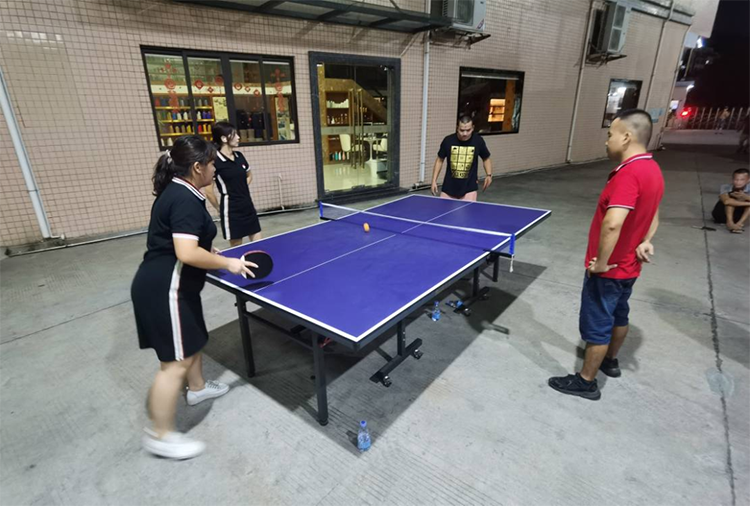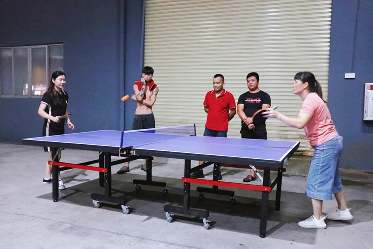 每一個(gè)團(tuán)隊(duì)里面總有幾個(gè)菜鳥選手,有的或許是因?yàn)槿鄙龠\(yùn)動(dòng)細(xì)胞,有的是因?yàn)橹皬奈唇佑|過乒乓球,團(tuán)隊(duì)里面比較會(huì)打球的同事開始充當(dāng)教練,有人的第一次開球是在墻壁上一個(gè)一個(gè)反反復(fù)復(fù)的一直攻擊,打到順手能發(fā)球就可以下課,經(jīng)過每晚的訓(xùn)練學(xué)會(huì)發(fā)球和接球,有的還慢慢的會(huì)蓋幾個(gè)球了,真是不可思議的事情;一些比較有基礎(chǔ)的同事都很有耐心的擔(dān)任其教練工作,即使是其他團(tuán)隊(duì)的“對(duì)手”也都是細(xì)心教導(dǎo)。