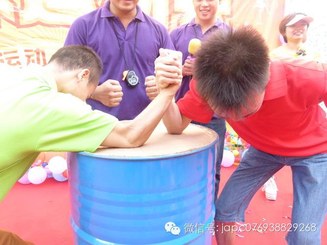 首先進(jìn)行的是吉安容器運(yùn)動(dòng)會(huì)必不可少的項(xiàng)目——“辦手腕”,比賽規(guī)則是:1、參賽選手必須使用右手進(jìn)行比賽。2、比賽時(shí),兩位選手分別坐在桌子兩側(cè),雙方必須同時(shí)將右手放到比賽指定位置,左手握拳置于背后,其余部位不得與臺(tái)面接觸,不得借助外力。3、雙方選手兩個(gè)大拇指緊緊相扣,在裁判發(fā)令后,誰先把對(duì)方的手掰倒,手背必須碰到桌面即為獲勝。4、在比賽過程中,雙方選手雙腳不能移動(dòng),每個(gè)人的肘部不能脫離桌面,身體不能來回劇烈晃動(dòng)。5、二人對(duì)決中勝出者團(tuán)隊(duì)積1分,負(fù)者不積分。