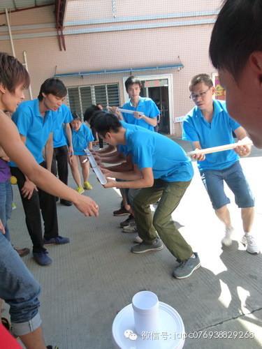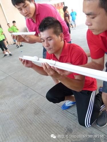 第三項(xiàng)比賽是最有挑戰(zhàn)性的項(xiàng)目——運(yùn)球。規(guī)則是:1、每組人員5人為1小組,分成三小組,ABCD組同時(shí)進(jìn)行,分三回合同時(shí)進(jìn)行比賽。四組同時(shí)進(jìn)行,每個(gè)組員手上有一條PV管。2、由第一個(gè)開始運(yùn),在5分鐘內(nèi)成功的將球掉入指定的桶里面就算結(jié)束,根據(jù)四組最快為第一名,以此類推,要求球不要掉下來,也不可以倒退,如果掉下來或者是倒退的話就要重頭開始,把PV管反過來兩個(gè)人為一根管來運(yùn),規(guī)則與第一條一致。3、第一名5分,第二名加3分,第三名加2分,第四名加1分;如果5分鐘內(nèi)沒有完成的小組,均不加分。