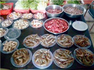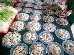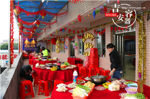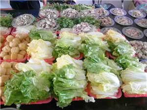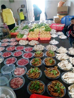 14號(hào)下午三點(diǎn)負(fù)責(zé)食材及餐桌的同事就位,開始擺放桌椅,食材拼盤,電磁爐鍋具到位,大家都在為晚宴做準(zhǔn)備,令我想起了老家年三十一家老小為了年夜飯忙碌的場(chǎng)景,忙碌中透著溫馨。