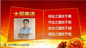 吉安容器2016年尾牙宴會(huì)在歡樂、愉快、激動(dòng)、感動(dòng)、和諧中落下帷幕,我們期待,美好的2017年將會(huì)帶給我們更多的驚喜;我們堅(jiān)信,2017年的我們會(huì)取得更大的進(jìn)步;恭祝大家2017年,都能夠事事順心!闔家幸福!大展宏圖!萬事如意!
