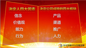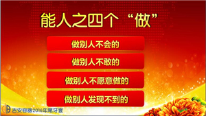 18:30,尾牙宴會(huì)正式開始,主持人宣布晚會(huì)開始,并請(qǐng)陳總上臺(tái)做年終總結(jié),分享他的從商之道,緊接著請(qǐng)出各部門主管做工作匯報(bào),總結(jié)。