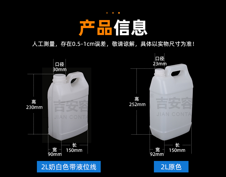 東莞市吉安包裝容器有限公司創(chuàng)立于2000年8月1日,是中國知名品牌企業(yè)。已通過ISO 9001質量管理體系資質認證,加入了中國中空協(xié)會,并獲得《中國知名品牌》,《國家標準合格產品》,《全國重合同守信用AAA級企業(yè)》,《質量.服務.誠信AAA企業(yè)》等榮譽稱號。根據(jù)材質的不同,我們的產品分為塑料容器、鐵質容器、鋁材容器、玻璃容器、紙質容器等五大類。按產品的名稱分為塑料桶、塑料瓶、包裝桶、涂料桶、機油桶、油脂桶、化工罐、膠水瓶、鐵桶、鐵罐、鋁瓶、鋁罐、阻隔瓶、高阻隔瓶等,容量從3ML至1000L多種規(guī)格,多種款式。適合包裝的產品包括:化學試劑、化工原料、化工助劑、飼料添加劑、油墨、油漆、樹脂農藥、日用化學品、聚氨脂、膠粘劑,廣泛應用于化工、建筑、食品、醫(yī)療、生物等各領域。