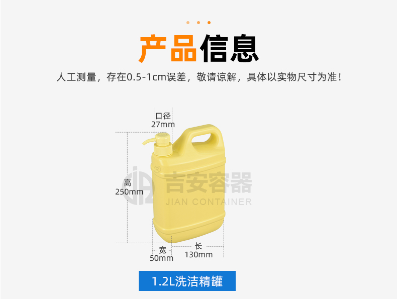 東莞市吉安包裝容器有限公司創(chuàng)立于2000年8月1日,是中國(guó)知名品牌企業(yè)。已通過ISO 9001質(zhì)量管理體系資質(zhì)認(rèn)證,加入了中國(guó)中空協(xié)會(huì),并獲得《中國(guó)知名品牌》,《國(guó)家標(biāo)準(zhǔn)合格產(chǎn)品》,《全國(guó)重合同守信用AAA級(jí)企業(yè)》,《質(zhì)量.服務(wù).誠(chéng)信AAA企業(yè)》等榮譽(yù)稱號(hào)。根據(jù)材質(zhì)的不同,我們的產(chǎn)品分為塑料容器、鐵質(zhì)容器、鋁材容器、玻璃容器、紙質(zhì)容器等五大類。按產(chǎn)品的名稱分為塑料桶、塑料瓶、包裝桶、涂料桶、機(jī)油桶、油脂桶、化工罐、膠水瓶、鐵桶、鐵罐、鋁瓶、鋁罐、阻隔瓶、高阻隔瓶等,容量從3ML至1000L多種規(guī)格,多種款式。適合包裝的產(chǎn)品包括:化學(xué)試劑、化工原料、化工助劑、飼料添加劑、油墨、油漆、樹脂農(nóng)藥、日用化學(xué)品、聚氨脂、膠粘劑,廣泛應(yīng)用于化工、建筑、食品、醫(yī)療、生物等各領(lǐng)域。