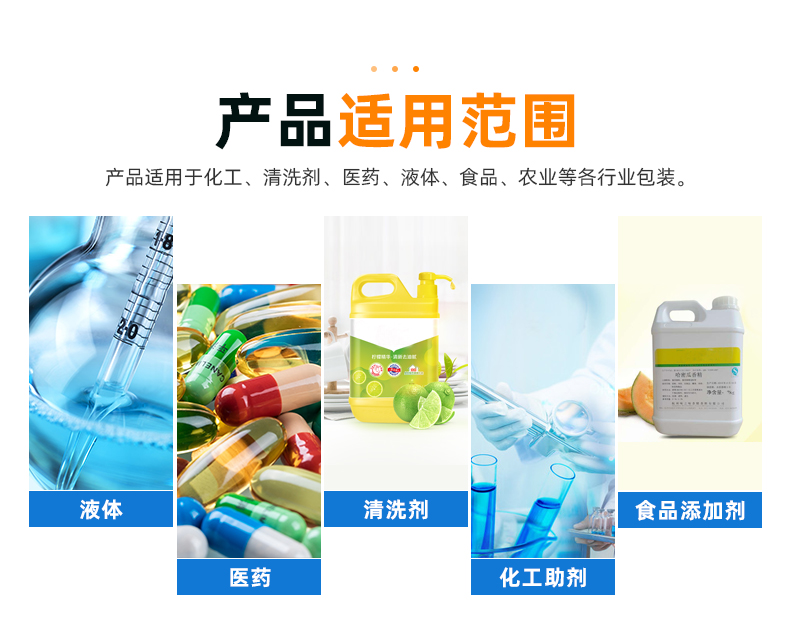東莞市吉安包裝容器有限公司創(chuàng)立于2000年8月1日,是中國知名品牌企業(yè)。已通過ISO 9001質量管理體系資質認證,加入了中國中空協(xié)會,并獲得《中國知名品牌》,《國家標準合格產(chǎn)品》,《全國重合同守信用AAA級企業(yè)》,《質量.服務.誠信AAA企業(yè)》等榮譽稱號。根據(jù)材質的不同,我們的產(chǎn)品分為塑料容器、鐵質容器、鋁材容器、玻璃容器、紙質容器等五大類。按產(chǎn)品的名稱分為塑料桶、塑料瓶、包裝桶、涂料桶、機油桶、油脂桶、化工罐、膠水瓶、鐵桶、鐵罐、鋁瓶、鋁罐、阻隔瓶、高阻隔瓶等,容量從3ML至1000L多種規(guī)格,多種款式。適合包裝的產(chǎn)品包括:化學試劑、化工原料、化工助劑、飼料添加劑、油墨、油漆、樹脂農藥、日用化學品、聚氨脂、膠粘劑,廣泛應用于化工、建筑、食品、醫(yī)療、生物等各領域。