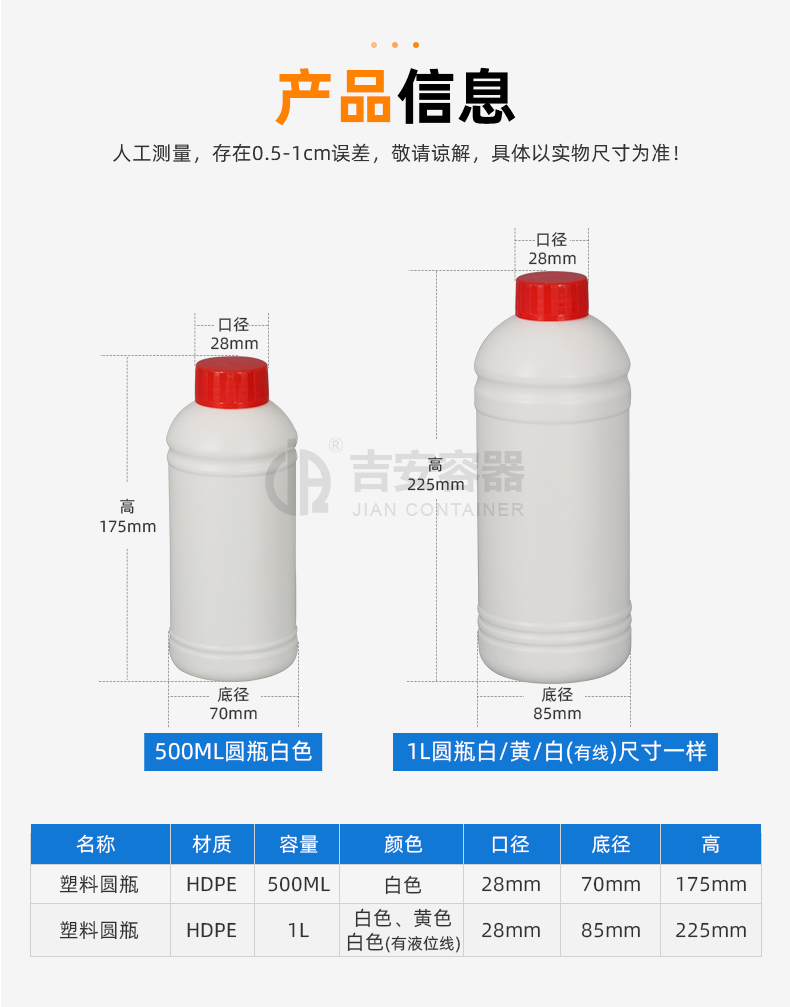 東莞市吉安包裝容器有限公司創(chuàng)立于2000年8月1日,是中國(guó)知名品牌企業(yè)。已通過(guò)ISO 9001質(zhì)量管理體系資質(zhì)認(rèn)證,加入了中國(guó)中空協(xié)會(huì),并獲得《中國(guó)知名品牌》,《國(guó)家標(biāo)準(zhǔn)合格產(chǎn)品》,《全國(guó)重合同守信用AAA級(jí)企業(yè)》,《質(zhì)量.服務(wù).誠(chéng)信AAA企業(yè)》等榮譽(yù)稱號(hào)。根據(jù)材質(zhì)的不同,我們的產(chǎn)品分為塑料容器、鐵質(zhì)容器、鋁材容器、玻璃容器、紙質(zhì)容器等五大類。按產(chǎn)品的名稱分為塑料桶、塑料瓶、包裝桶、涂料桶、機(jī)油桶、油脂桶、化工罐、膠水瓶、鐵桶、鐵罐、鋁瓶、鋁罐、阻隔瓶、高阻隔瓶等,容量從3ML至1000L多種規(guī)格,多種款式。適合包裝的產(chǎn)品包括:化學(xué)試劑、化工原料、化工助劑、飼料添加劑、油墨、油漆、樹(shù)脂農(nóng)藥、日用化學(xué)品、聚氨脂、膠粘劑,廣泛應(yīng)用于化工、建筑、食品、醫(yī)療、生物等各領(lǐng)域。