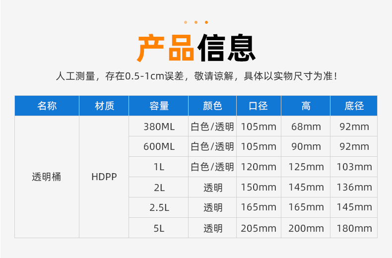 | 品名:380ml透明食品桶(F501) | |