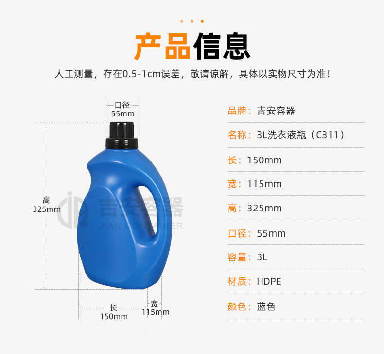 東莞市吉安包裝容器有限公司創(chuàng)立于2000年8月1日,是中國(guó)知名品牌企業(yè)。已通過ISO 9001質(zhì)量管理體系資質(zhì)認(rèn)證,加入了中國(guó)中空協(xié)會(huì),并獲得《中國(guó)知名品牌》,《國(guó)家標(biāo)準(zhǔn)合格產(chǎn)品》,《全國(guó)重合同守信用AAA級(jí)企業(yè)》,《質(zhì)量.服務(wù).誠(chéng)信AAA企業(yè)》等榮譽(yù)稱號(hào)。根據(jù)材質(zhì)的不同,我們的產(chǎn)品分為塑料容器、鐵質(zhì)容器、鋁材容器、玻璃容器、紙質(zhì)容器等五大類。按產(chǎn)品的名稱分為塑料桶、塑料瓶、包裝桶、涂料桶、機(jī)油桶、油脂桶、化工罐、膠水瓶、鐵桶、鐵罐、鋁瓶、鋁罐、阻隔瓶、高阻隔瓶等,容量從3ML至1000L多種規(guī)格,多種款式。適合包裝的產(chǎn)品包括:化學(xué)試劑、化工原料、化工助劑、飼料添加劑、油墨、油漆、樹脂農(nóng)藥、日用化學(xué)品、聚氨脂、膠粘劑,廣泛應(yīng)用于化工、建筑、食品、醫(yī)療、生物等各領(lǐng)域。