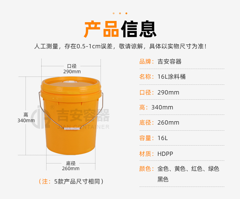 東莞市吉安包裝容器有限公司創(chuàng)立于2000年8月1日,是中國知名品牌企業(yè)。已通過ISO 9001質(zhì)量管理體系資質(zhì)認證,加入了中國中空協(xié)會,并獲得《中國知名品牌》,《國家標準合格產(chǎn)品》,《全國重合同守信用AAA級企業(yè)》,《質(zhì)量.服務(wù).誠信AAA企業(yè)》等榮譽稱號。根據(jù)材質(zhì)的不同,我們的產(chǎn)品分為塑料容器、鐵質(zhì)容器、鋁材容器、玻璃容器、紙質(zhì)容器等五大類。按產(chǎn)品的名稱分為塑料桶、塑料瓶、包裝桶、涂料桶、機油桶、油脂桶、化工罐、膠水瓶、鐵桶、鐵罐、鋁瓶、鋁罐、阻隔瓶、高阻隔瓶等,容量從3ML至1000L多種規(guī)格,多種款式。適合包裝的產(chǎn)品包括:化學試劑、化工原料、化工助劑、飼料添加劑、油墨、油漆、樹脂農(nóng)藥、日用化學品、聚氨脂、膠粘劑,廣泛應(yīng)用于化工、建筑、食品、醫(yī)療、生物等各領(lǐng)域。