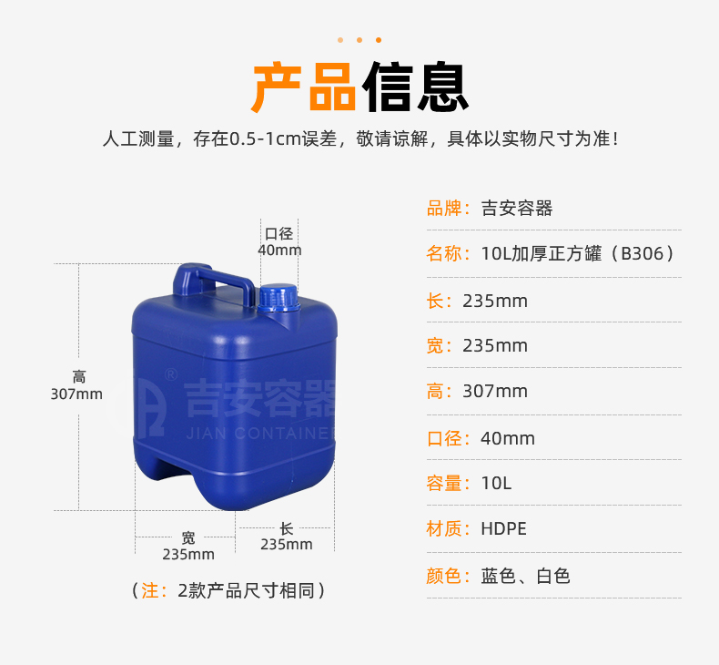 小口塑料桶:采用全新聚乙烯原料吹塑工藝制作而成,具有耐腐蝕,耐酸堿特性,小口設(shè)計密封性能強,廣泛應(yīng)用于化工、清潔、食品、添加劑、汽車等各行業(yè)液體包裝 。