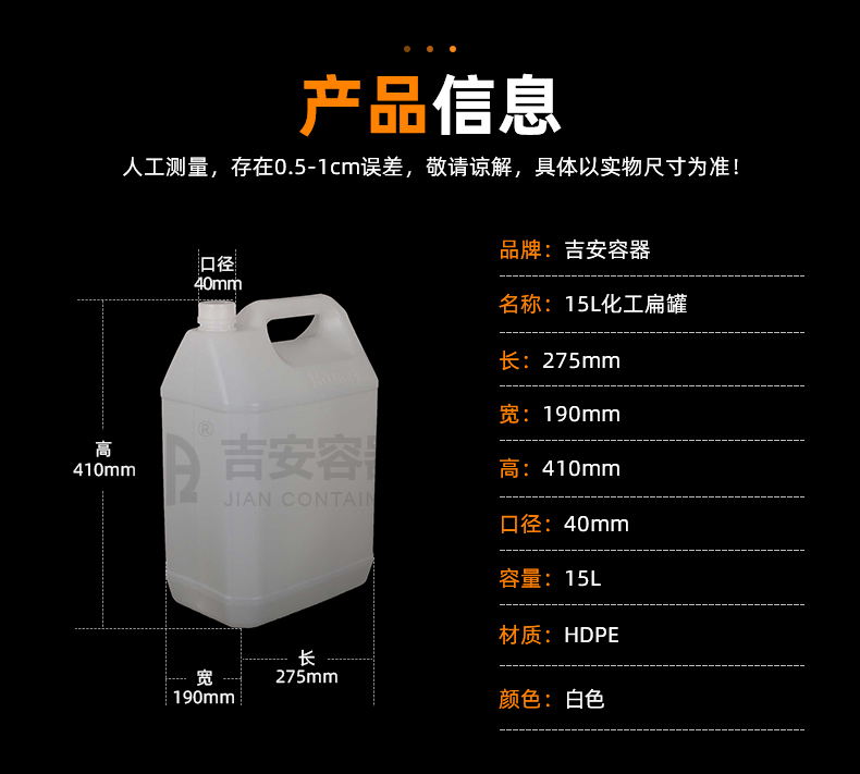 塑料扁罐采用HDPE原材料吹塑而成,具有良好的耐酸堿性及密封性,方形設(shè)計方便堆放,不占用空間,美觀實用。具備不變形,使用方便等特征,可根據(jù)客戶需求做印刷及貼膜,產(chǎn)品適用于尿素、機油、汽油、清洗劑、化工助劑、食品添加劑等液體包裝。