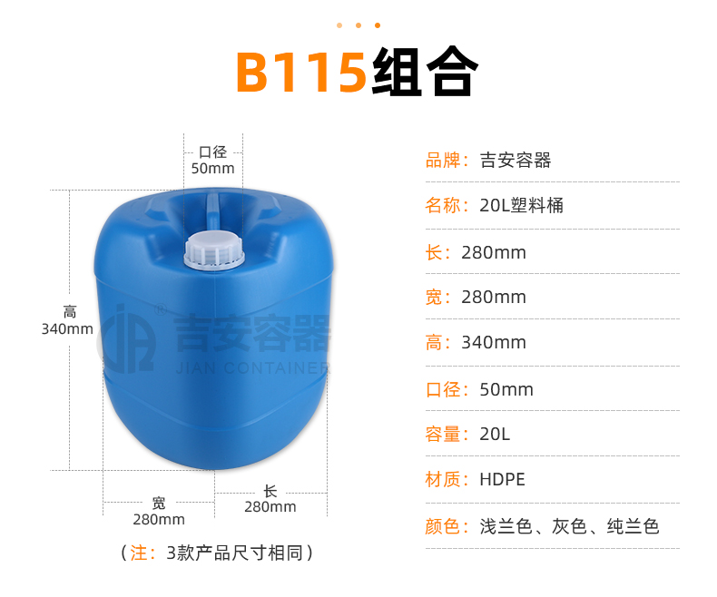 采用HDPE原料吹塑而成,該產(chǎn)品密封性能強(qiáng),配備內(nèi)蓋,可重疊,節(jié)約空間,具耐酸堿特性,產(chǎn)品經(jīng)過(guò)密封測(cè)驗(yàn),堆碼、跌落測(cè)試。