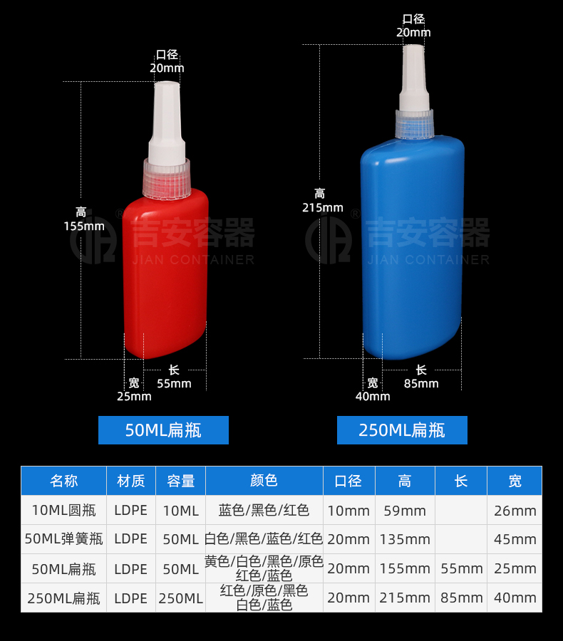 東莞市吉安包裝容器有限公司創(chuàng)立于2000年8月1日,是中國知名品牌企業(yè)。已通過ISO 9001質(zhì)量管理體系資質(zhì)認證,加入了中國中空協(xié)會,并獲得《中國知名品牌》,《國家標(biāo)準(zhǔn)合格產(chǎn)品》,《全國重合同守信用AAA級企業(yè)》,《質(zhì)量.服務(wù).誠信AAA企業(yè)》等榮譽稱號。根據(jù)材質(zhì)的不同,我們的產(chǎn)品分為塑料容器、鐵質(zhì)容器、鋁材容器、玻璃容器、紙質(zhì)容器等五大類。按產(chǎn)品的名稱分為塑料桶、塑料瓶、包裝桶、涂料桶、機油桶、油脂桶、化工罐、膠水瓶、鐵桶、鐵罐、鋁瓶、鋁罐、阻隔瓶、高阻隔瓶等,容量從3ML至1000L多種規(guī)格,多種款式。適合包裝的產(chǎn)品包括:化學(xué)試劑、化工原料、化工助劑、飼料添加劑、油墨、油漆、樹脂農(nóng)藥、日用化學(xué)品、聚氨脂、膠粘劑,廣泛應(yīng)用于化工、建筑、食品、醫(yī)療、生物等各領(lǐng)域。