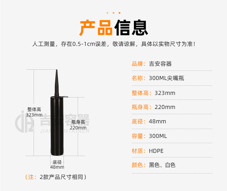 尖嘴瓶適用行業(yè)廣泛,多用于膠水包裝、眼藥水包裝、食品調(diào)料包裝,因其尖嘴特點(diǎn),具備方便滴膠,操作時(shí)流量可控可調(diào),使用方便。