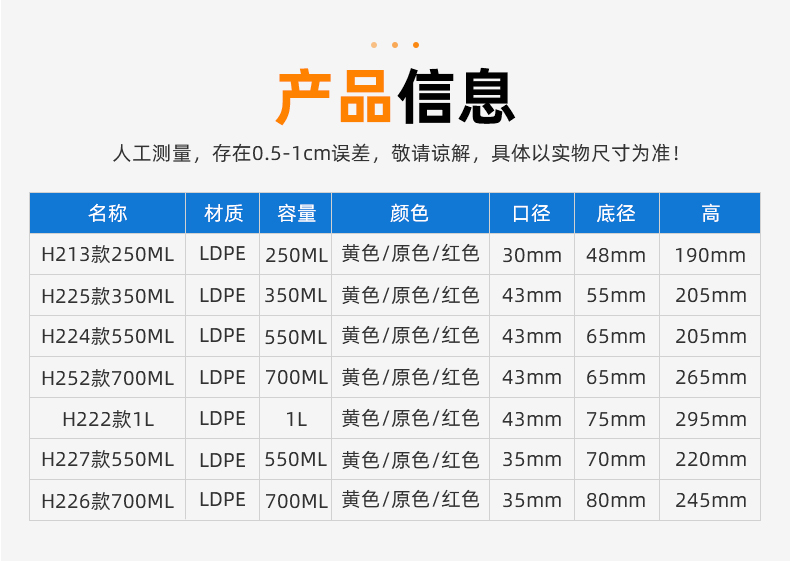 材質:瓶身-LDPE,瓶蓋-HDPP