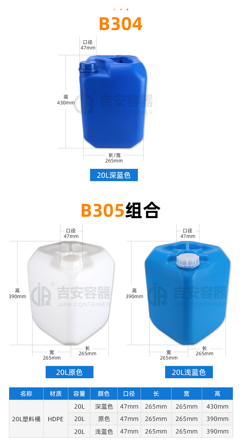 | 品名:20L正方淺藍(lán)化工桶(B304) | |