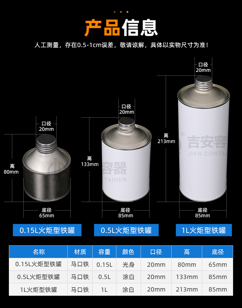 東莞市吉安包裝容器有限公司創(chuàng)立于2000年8月1日,是中國知名品牌企業(yè)。已通過ISO 9001質(zhì)量管理體系資質(zhì)認(rèn)證,加入了中國中空協(xié)會,并獲得《中國知名品牌》,《國家標(biāo)準(zhǔn)合格產(chǎn)品》,《全國重合同守信用AAA級企業(yè)》,《質(zhì)量.服務(wù).誠信AAA企業(yè)》等榮譽(yù)稱號。根據(jù)材質(zhì)的不同,我們的產(chǎn)品分為塑料容器、鐵質(zhì)容器、鋁材容器、玻璃容器、紙質(zhì)容器等五大類。按產(chǎn)品的名稱分為塑料桶、塑料瓶、包裝桶、涂料桶、機(jī)油桶、油脂桶、化工罐、膠水瓶、鐵桶、鐵罐、鋁瓶、鋁罐、阻隔瓶、高阻隔瓶等,容量從3ML至1000L多種規(guī)格,多種款式。適合包裝的產(chǎn)品包括:化學(xué)試劑、化工原料、化工助劑、飼料添加劑、油墨、油漆、樹脂農(nóng)藥、日用化學(xué)品、聚氨脂、膠粘劑,廣泛應(yīng)用于化工、建筑、食品、醫(yī)療、生物等各領(lǐng)域。