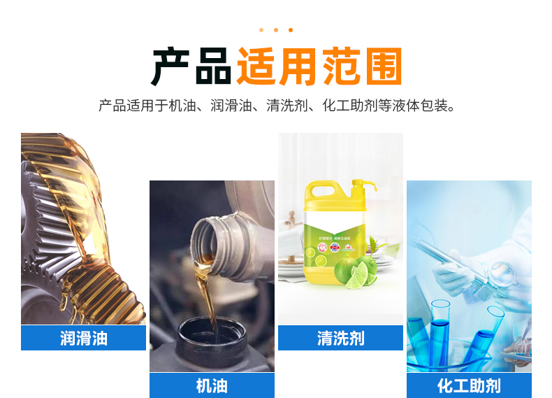 塑料扁罐采用HDPE原材料吹塑而成,具有良好的耐酸堿性及密封性,方形設(shè)計方便堆放,不占用空間,美觀實用。具備不變形,使用方便等特征,可根據(jù)客戶需求做印刷及貼膜,產(chǎn)品適用于尿素、機油、汽油、清洗劑、化工助劑、食品添加劑等液體包裝。